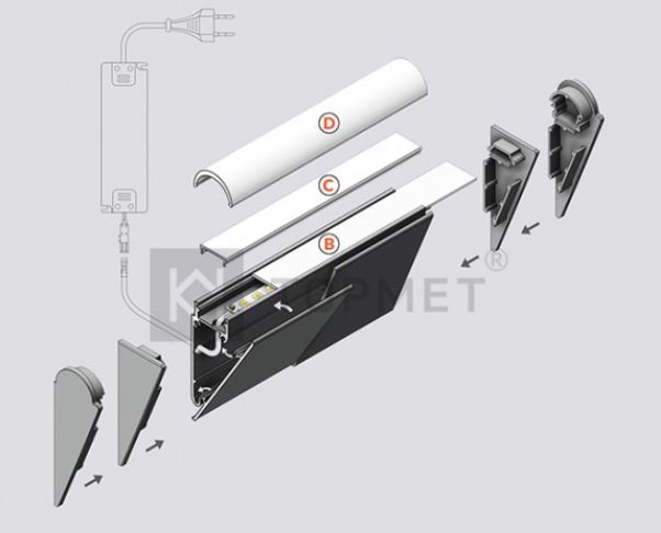 profil de couverture pour bandes LED, adapté a l'éclairage indirect.
