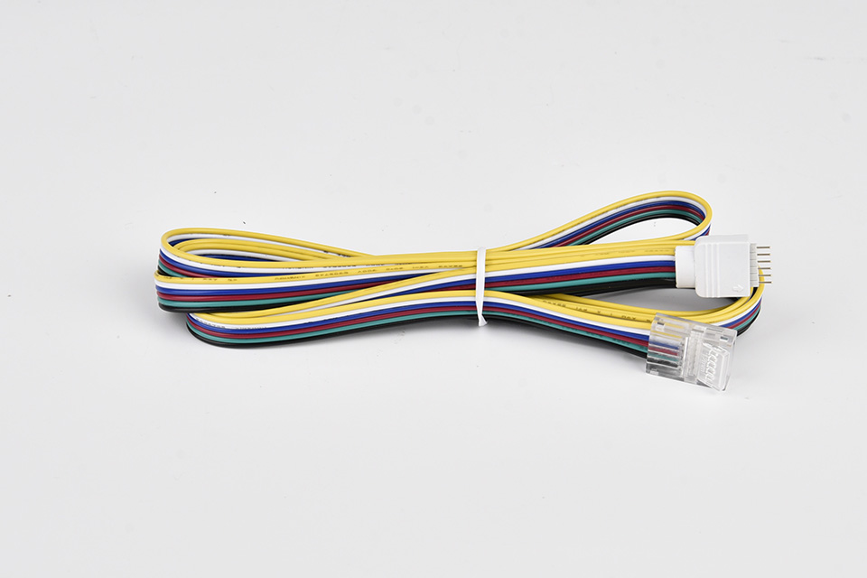 Propojovací kabel mezi RGBCCT LED páskem a jednotkou All in One. Délka 2m. Po připojení LED pásků do jednotky je nutné upevnit krytku kabelů pomocí přiložených vrutů, jinak může docházet k samovolnému přerušení kontaktů.