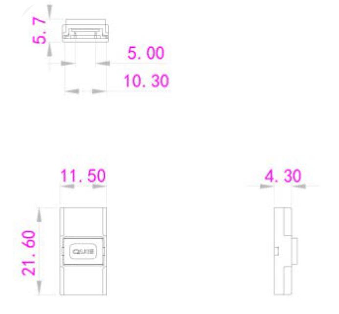 Servir a connecter deux rubans led de largeur 10mm. Convient uniquement pour certains types de profils en aluminium, voir assortiment associé. Longueur 21,6mm, largeur 11,5mm, hauteur 4,3mm (5,5mm avant enclenchement). Longueur du ruban led a l'intérieur du connecteur 11mm. Charge max. 5A (12V/60W, 24V/120W).
