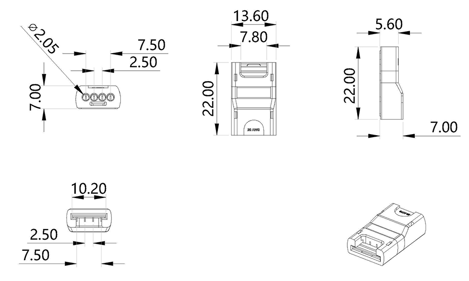 Pour le raccordement des rubans led RGB entre eux et entre un ruban led RGB et une unité de commande, voir assortiment associé.