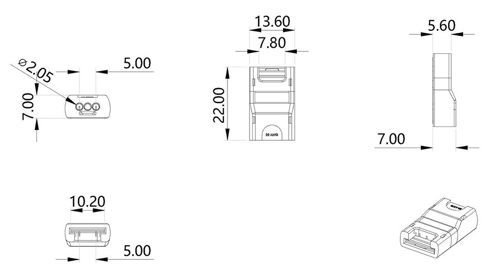 Pour le raccordement d’un ruban led monochrome de largeur 10 mm et d’autres accessoires tels que transformateur, armoire de distribution, unité de commande, voir la gamme associée. Nombre maximal de puces sur le ruban led - 120 pcs/m.