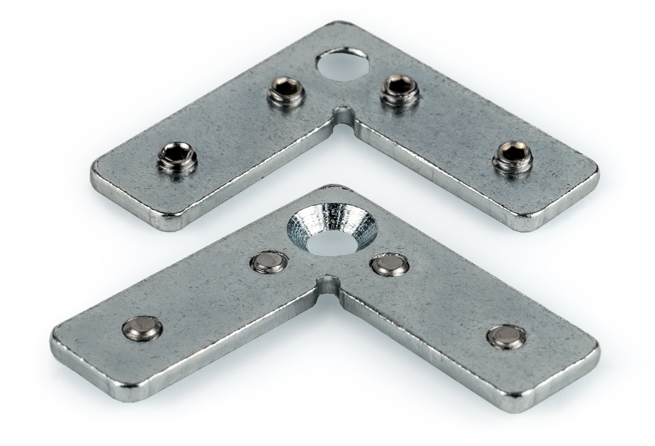 Spojovací sada 90° k profilům Maglyte viz. Související sortiment. Sad a obsahuje 2 kusy spojek včetně spojovacího materiálu.