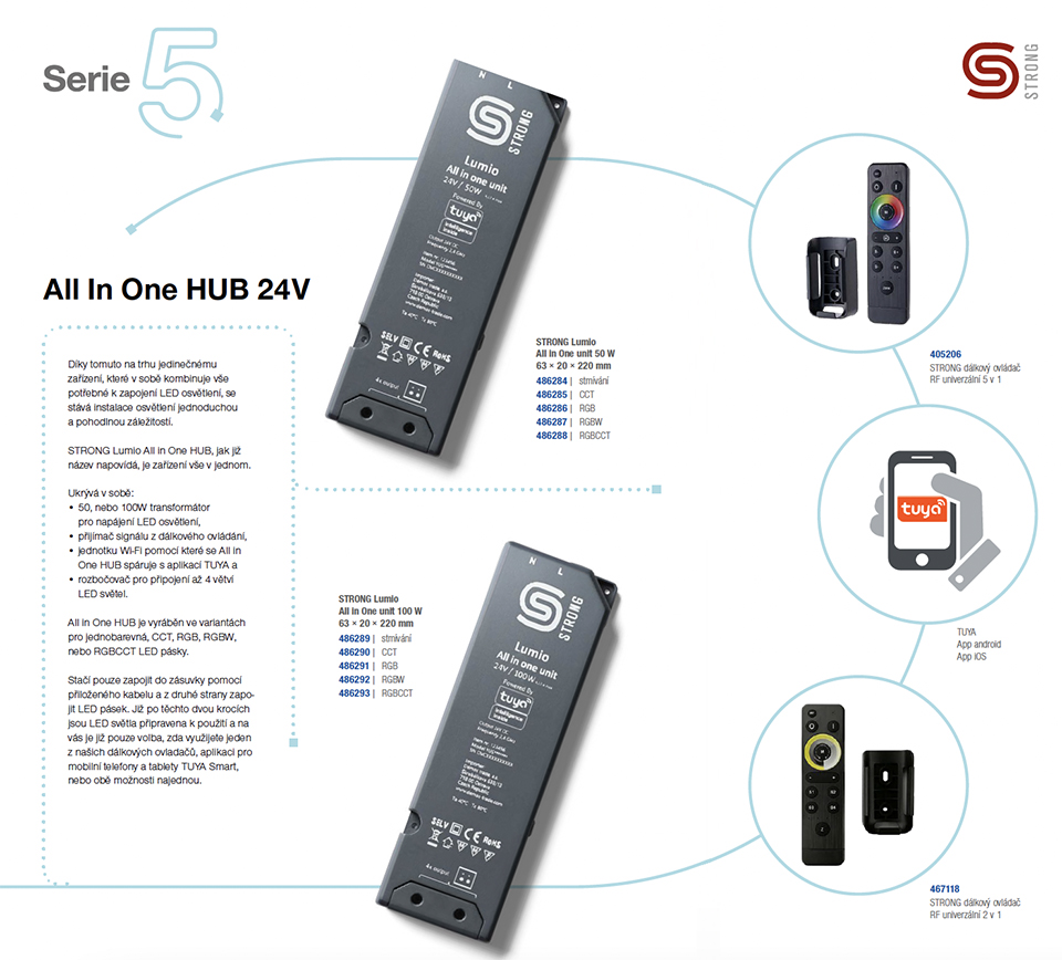Le All in One HUB est fabriqué en versions pour rubans LED unicolores, CCT, RGB, RGBW ou RGBCCT.
