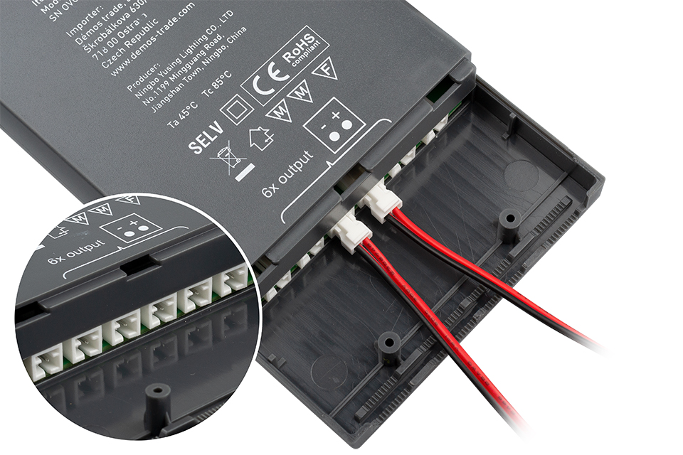 Grâce a cet appareil unique sur le marché, qui combine tout le nécessaire pour le branchement de l’éclairage LED, l’installation de l’éclairage devient une opération simple et confortable.