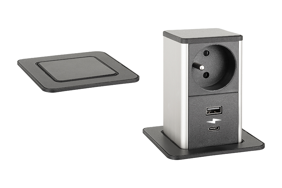 StrongPower PowerUp tiroir, 1x230V, française, chargeur USB A+C, noir