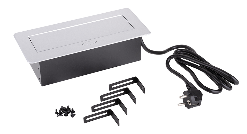 Strong prise électrique 3x 230V, type Schuko (standard pour DE, HU, etc.), câble 1,5 m, dimensions 265x118x68mm, argenté