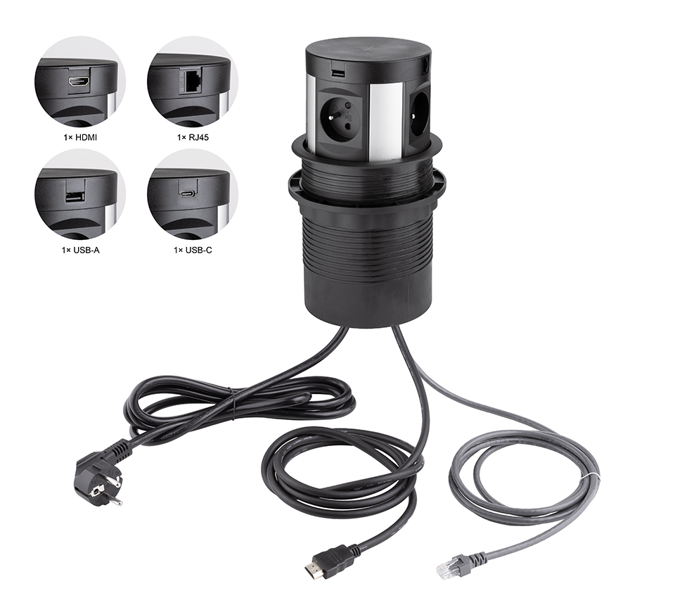 StrongPower Tiroir éléctrique coulissant, 4x230V, FR, RJ45, USB A+C, HDMI, sans