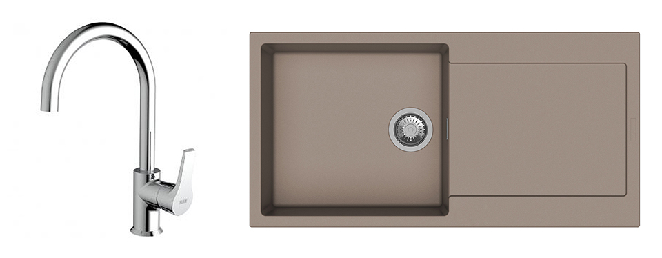 StrongSinks évier granit Zala 1000x500 marron + robinet Rhona chromé