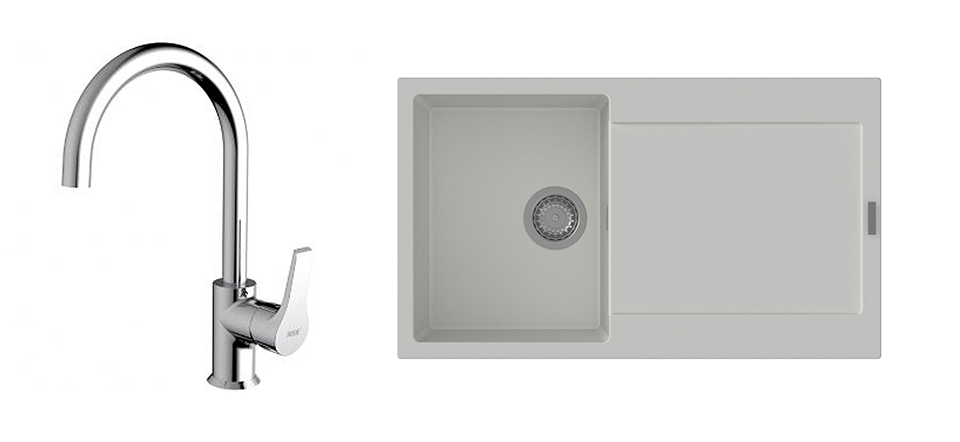 StrongSinks évier granit Zala 860x500 blanc + robinet Rhona chromé