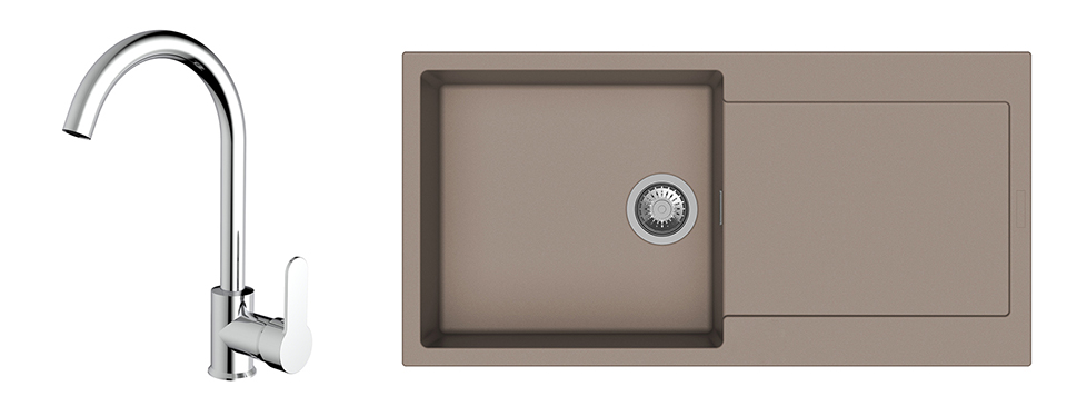 StrongSinks évier Zala 1000x500 marron + robinet Seina chrom