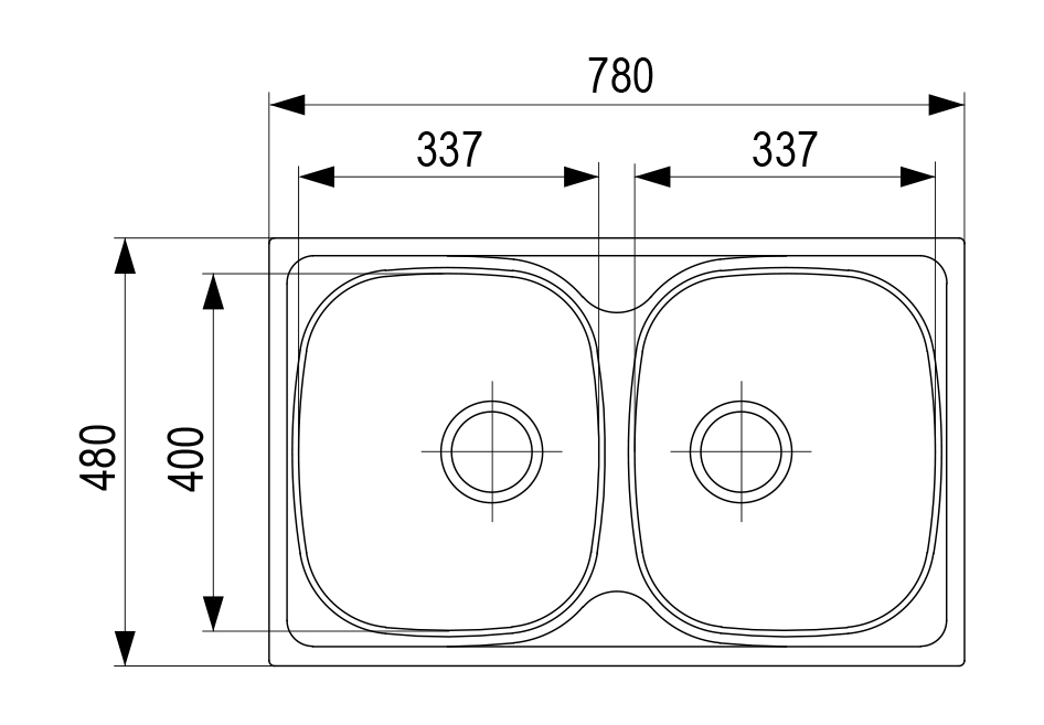 • cuve : 2x 337 × 400 mm