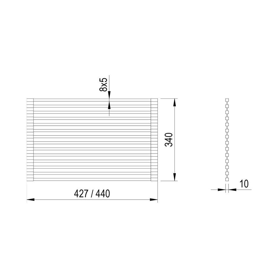 StrongSinks grille roulante 427 × 340 mm, matériau inox. Convient pour les éviers inox StrongSinks S3, sauf l’évier Dnipro, code 482141