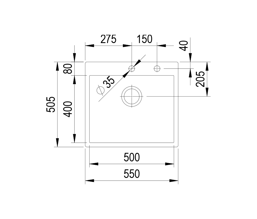StrongSinks S3 Évier Duna 550 550x505mm avec excentrique inox