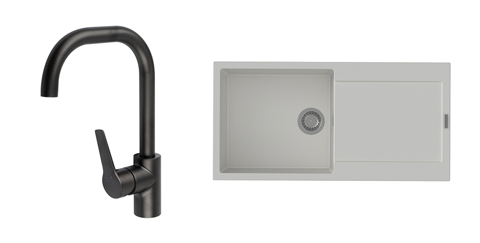 StrongSinks S3 évier granit Zala 1000 blanc + robinet Garonne U noir mat