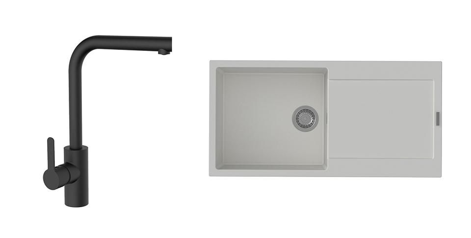 StrongSinks S3 évier granit Zala 1000 blanc + robinet Ipoly L noir mat
