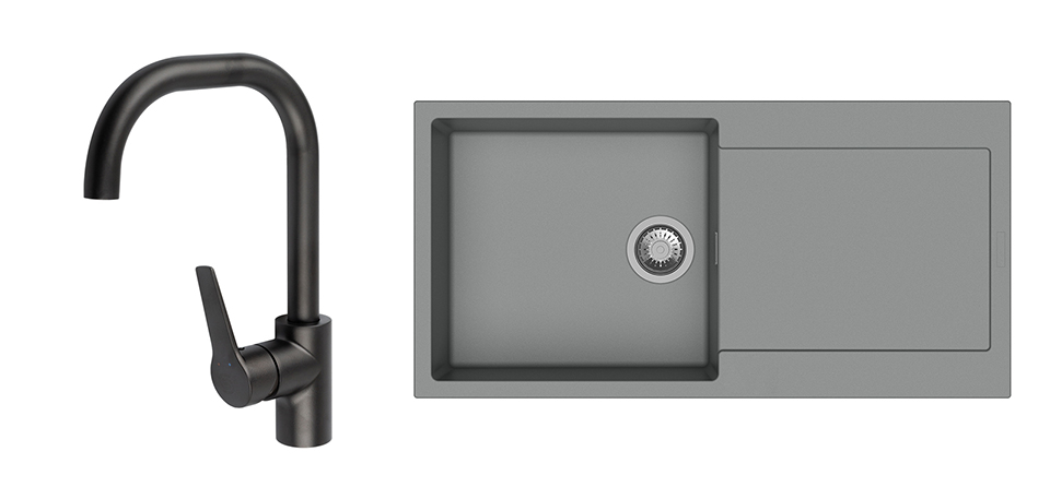 StrongSinks S3 évier granit Zala 1000 gris + robinet Garonne U noir mat