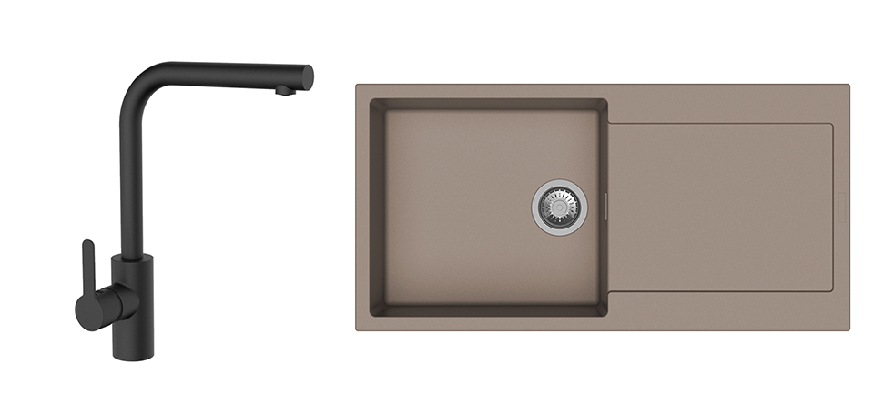 StrongSinks S3 évier granit Zala 1000 marron + robinet Ipoly L noir mat