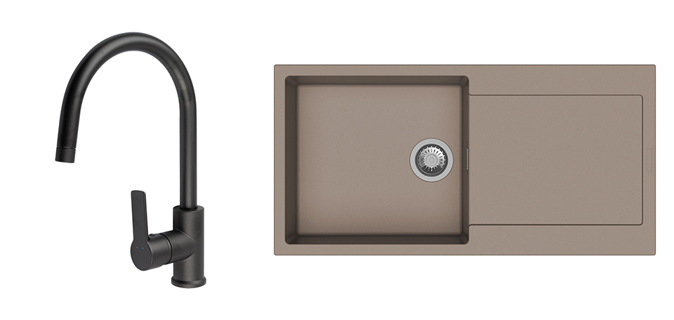 StrongSinks S3 évier granit Zala 1000 marron + robinet Loira arc noir mat