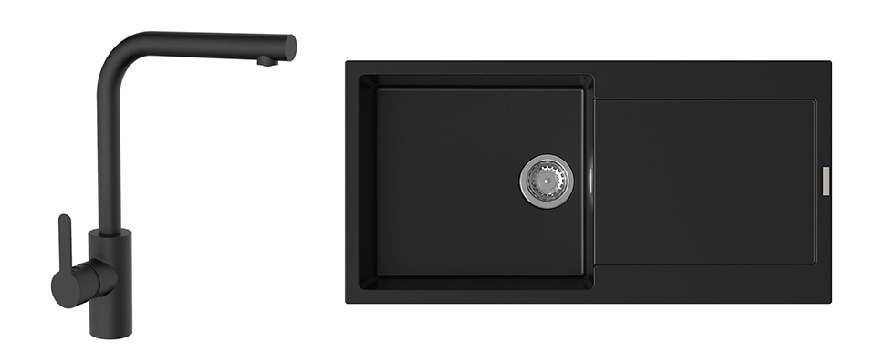 StrongSinks S3 évier granit Zala 1000x500mm noir + robinet Ipoly L noir