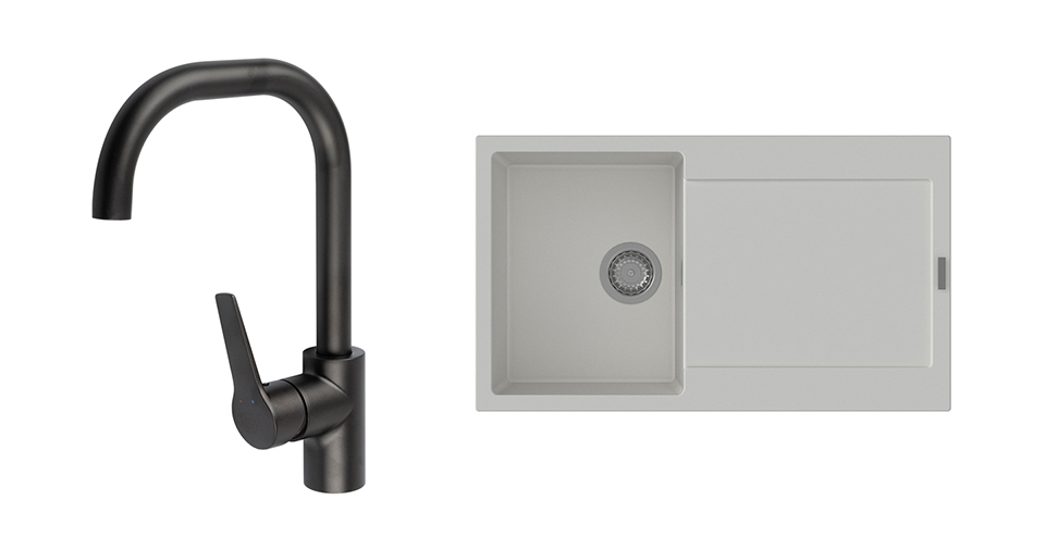 StrongSinks S3 évier granit Zala 860 blanc + robinet Garonne U noir mat