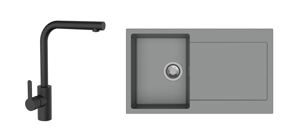 StrongSinks S3 évier granit Zala 860x500 gris + robinet Ipoly L noir mat