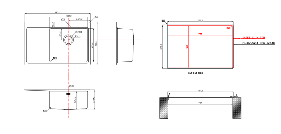 Installation de l'évier | Montage supérieure; Montage a fleur |