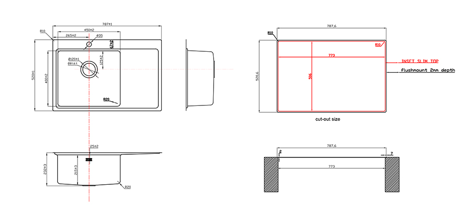 Installation de l'évier | Montage supérieure; Montage a fleur |