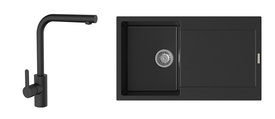 StrongSinks S3 : Évier Zala 860x500?mm + Robinet Ipoly Noir Mat