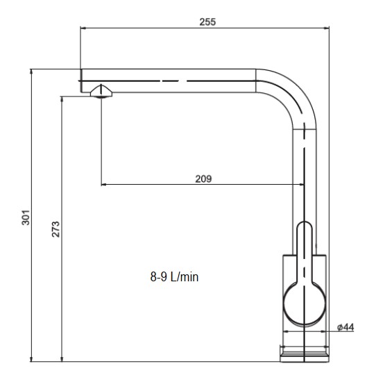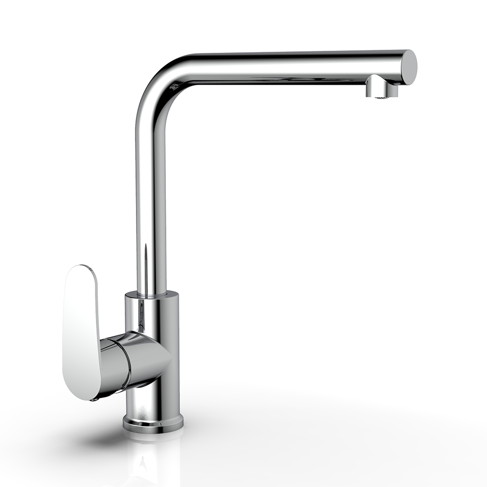 Robinet d'évier sur pied sans douchette en finition chromée.