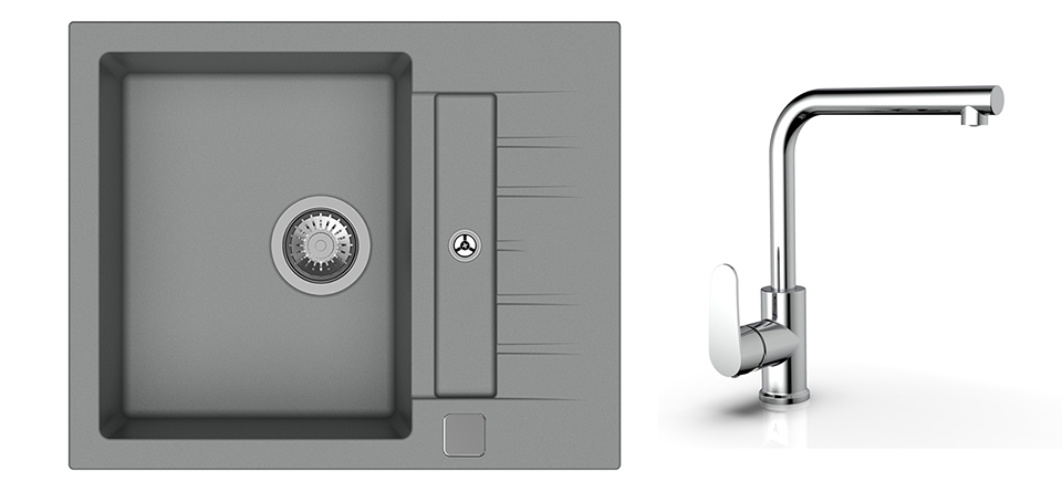 StrongSinks S3 Set dřez Vardar 615 615x500mm granit šedá + Baterie Stréva chrom