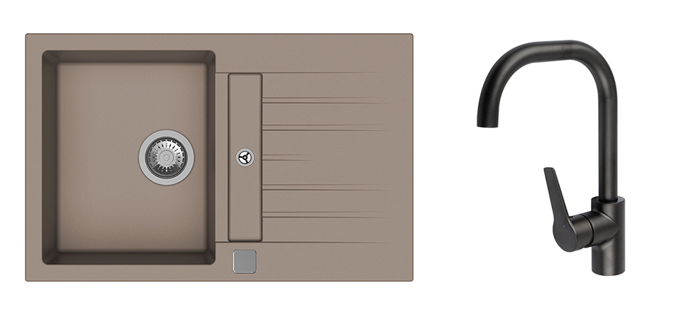 StrongSinks S3 Set dřez Vardar 780 780x500mm granit béžová+ Bater. Garonne černá