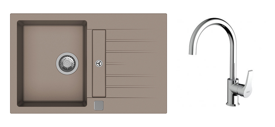 StrongSinks S3 Set dřez Vardar 780 780x500mm granit béžová + Baterie Rhona chrom