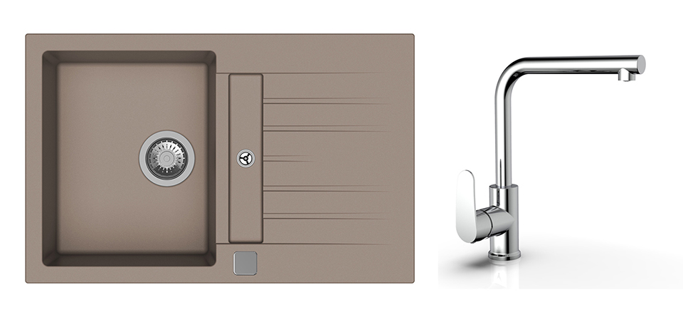 StrongSinks S3 Set dřez Vardar 780 780x500mm granit béžová+ Baterie Stréva chr.