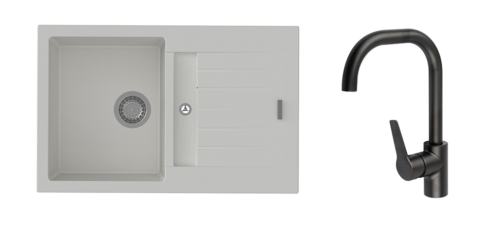 StrongSinks S3 Set dřez Vardar 780 780x500mm granit bílá + Baterie Garonne černá