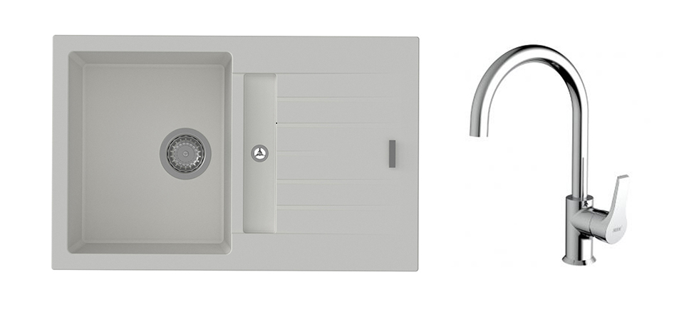 StrongSinks S3 Set dřez Vardar 780 780x500mm granit bílá + Baterie Rhona chrom