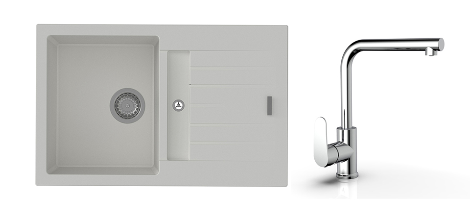 StrongSinks S3 Set dřez Vardar 780 780x500mm granit bílá + Baterie Stréva chr.