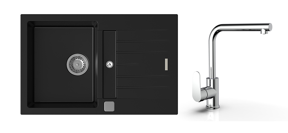 StrongSinks S3 Set dřez Vardar 780 780x500mm granit černá + Baterie Stréva chr.
