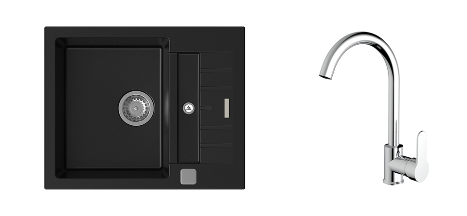 StrongSinks S3 Set sink Vardar 615,615x500mm,gran.black+mixer tap Seina,chr.
