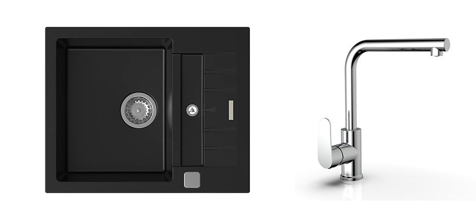 StrongSinks S3 Set sink Vardar 615,615x500mm,gran.black+mixer tap Stréva,chr.
