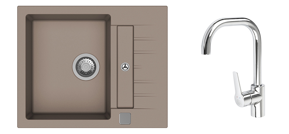 StrongSinks S3 Set sink Vardar 615,615x500mm,gran.brown+mixer tap Garonne,chr.