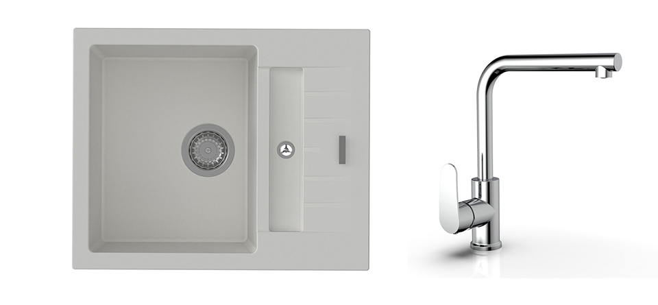 StrongSinks S3 Set sink Vardar 615,615x500mm,gran.white+mixer tap Stréva,chr.