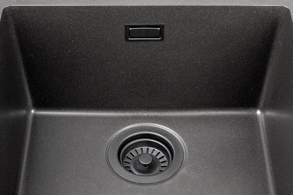 StrongSinks S3 Siphon gain de place pour évier granit, valve passoire noire