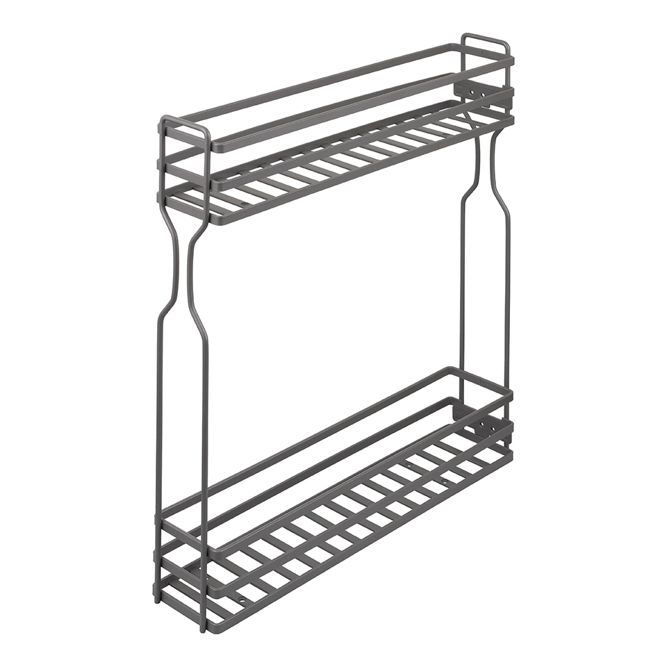 Double panier latéral universel (droite-gauche) pour une largeur extérieure de caisson de 150mm. Dimensions : largeur 88, profondeur 475, hauteur 470mm. Finition gris foncé. Sans sortie, a combiner avec une sortie a amortissement ou une sortie KICK. Peut etre utilisé avec 92004T, glissiere a billes a extension totale avec retenue et amortissement. Capacité de charge 45kg.