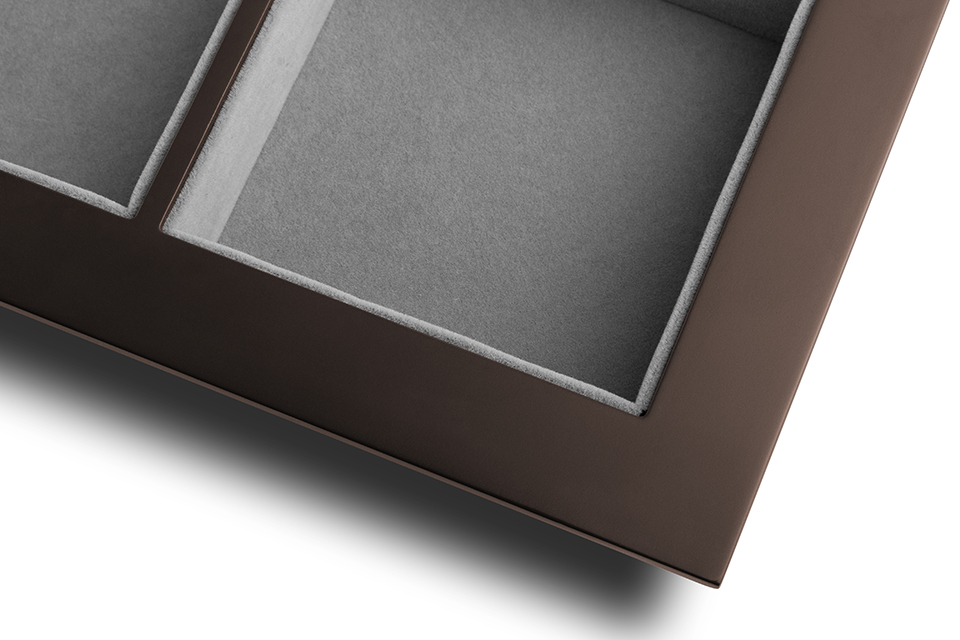 Design élégant et épuré dans une finition marron foncé tendance combinée a un insert gris pour le rangement de bijoux, parfum ou autres petits objets. Cadre solide avec tiroir coulissant invisible et amortissement intégré. Largeur du corps - 900 mm. Hauteur minimale requise dans le corps 65 mm.