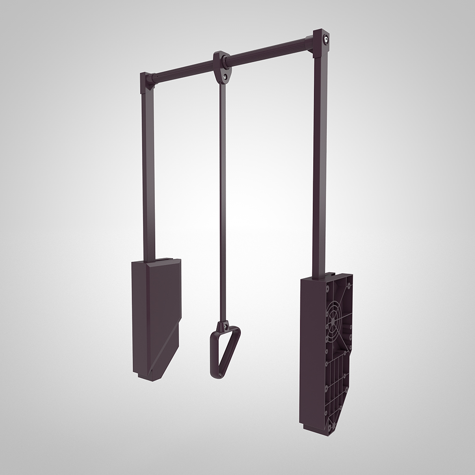 Élégant, design épuré dans une finition marron foncé tendance. Tringle de penderie robuste et rabattable avec amortissement en position haute. Poignée ergonomique. Largeur du corps - 800-1000 mm. Charge maximale 12 kg.