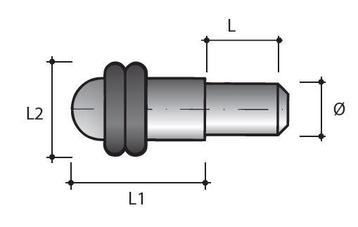Diametre : 5 mm. L = 8 mm, L1 = 11 mm, L2 = 9 mm.