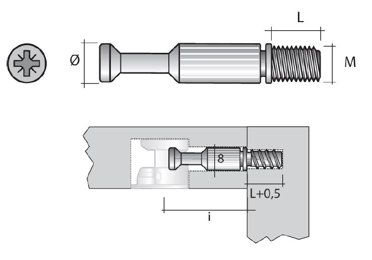 Dimensions : M = 7 mm, I = 34 mm, L = 11 mm, filetage euro, diametre de perçage 5 mm.