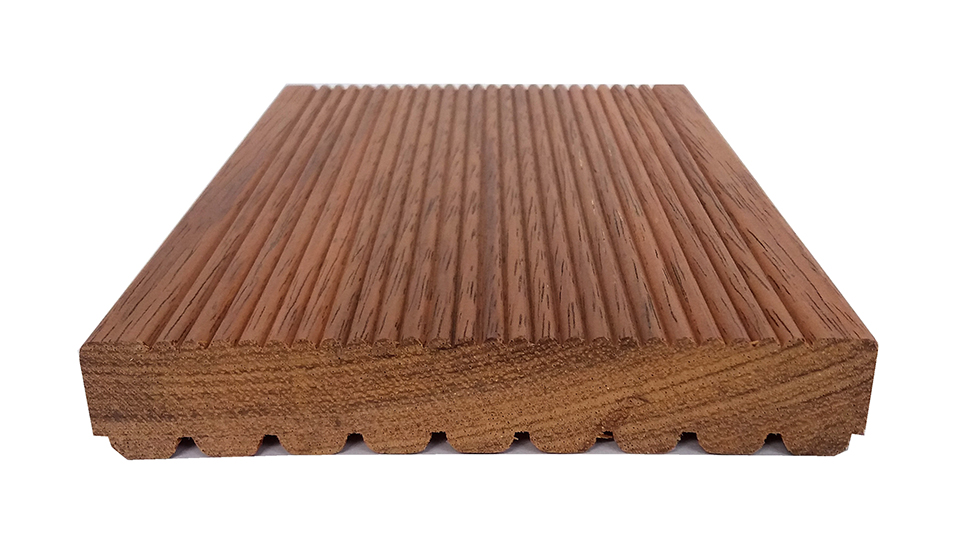 Dřevo Merbau je hnědo šedé až tmavě červeno hnědé s různými odstíny. Barevné rozdíly mezi jednotlivými prkny jsou přirozené a obvyklé. Letokruhy u tohoto typu dřeva nejsou znatelné. Dřevo Merbau je všeobecně pokládáno za pevné a velmi tvrdé. Je v každém ohledu velmi trvanlivé a po vysušení je stabilní. Díky vysoké hustotě a extrémně vysokému obsahu ve dřevě obsažených látek má dlouhou životnost. Hustota dřeva: ca. 900 - 1100kg/m3 Vzduchosuché: 20 - 22% Doporučené dilatace mezi prkny při pokládce: 6 – 8 mm 25 x 145 mm pohledová strana = jemná drážka