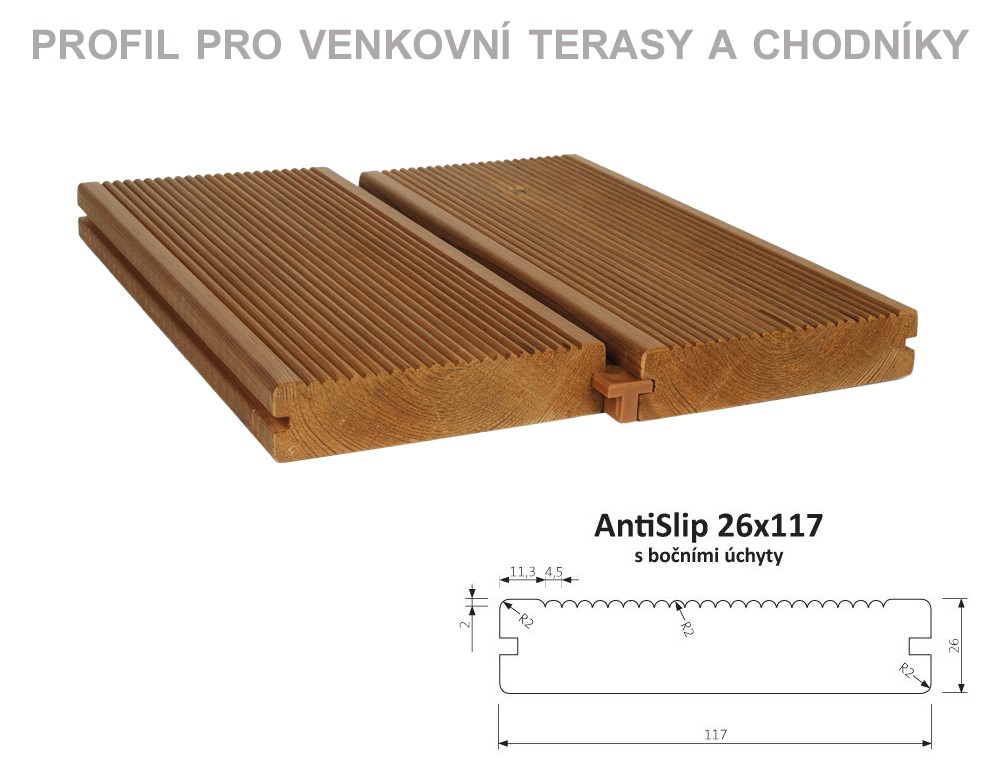 TERASY ThermoWood prkno AntiSlip 26/117/4200 Boční úchyt