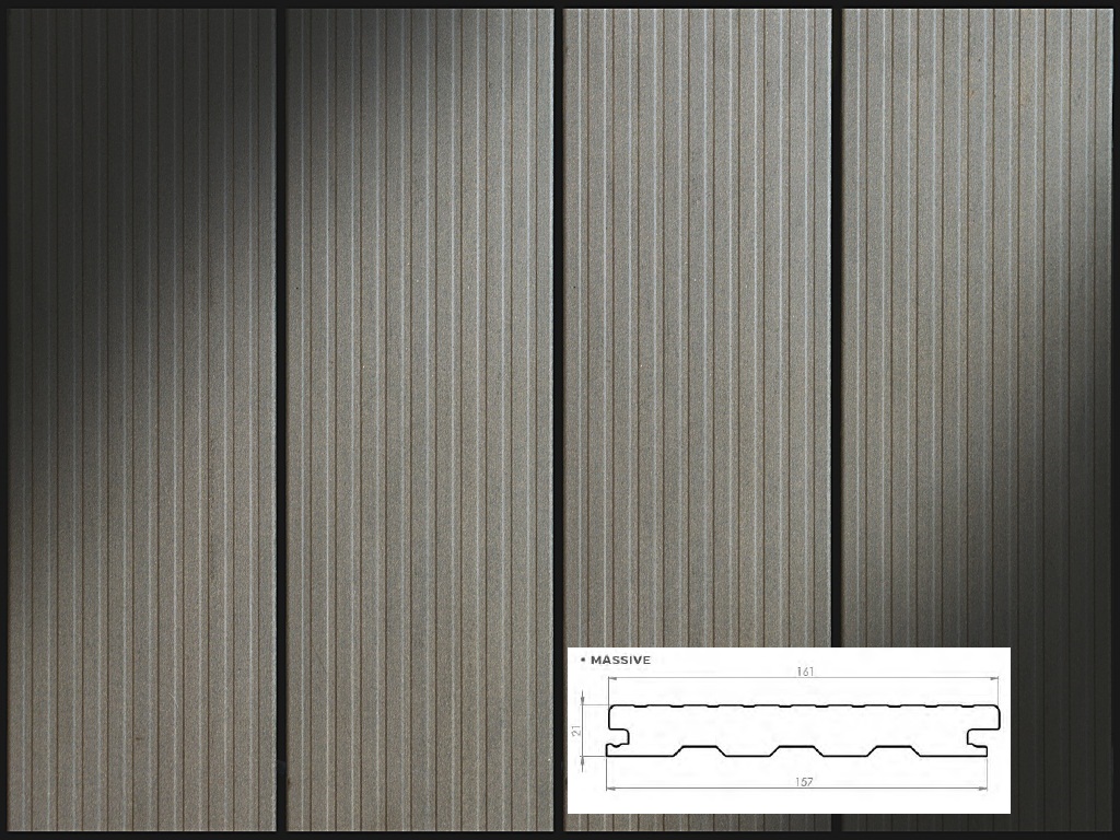 Perwood WPC terasové prkno TP FARM - jednostranný plný drážkovaný profil 161x21 mm (povrch broušený). Standartní délka 4000 mm, u atypické délky je konečná cena závislá na objednaném množství.